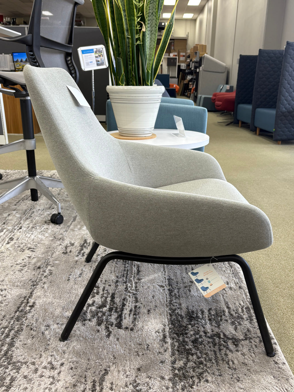 • Sleek, contemporary silhouette featuring a roomy back and gently curved arms—ideal for lounges, reception areas, or breakout spaces  .