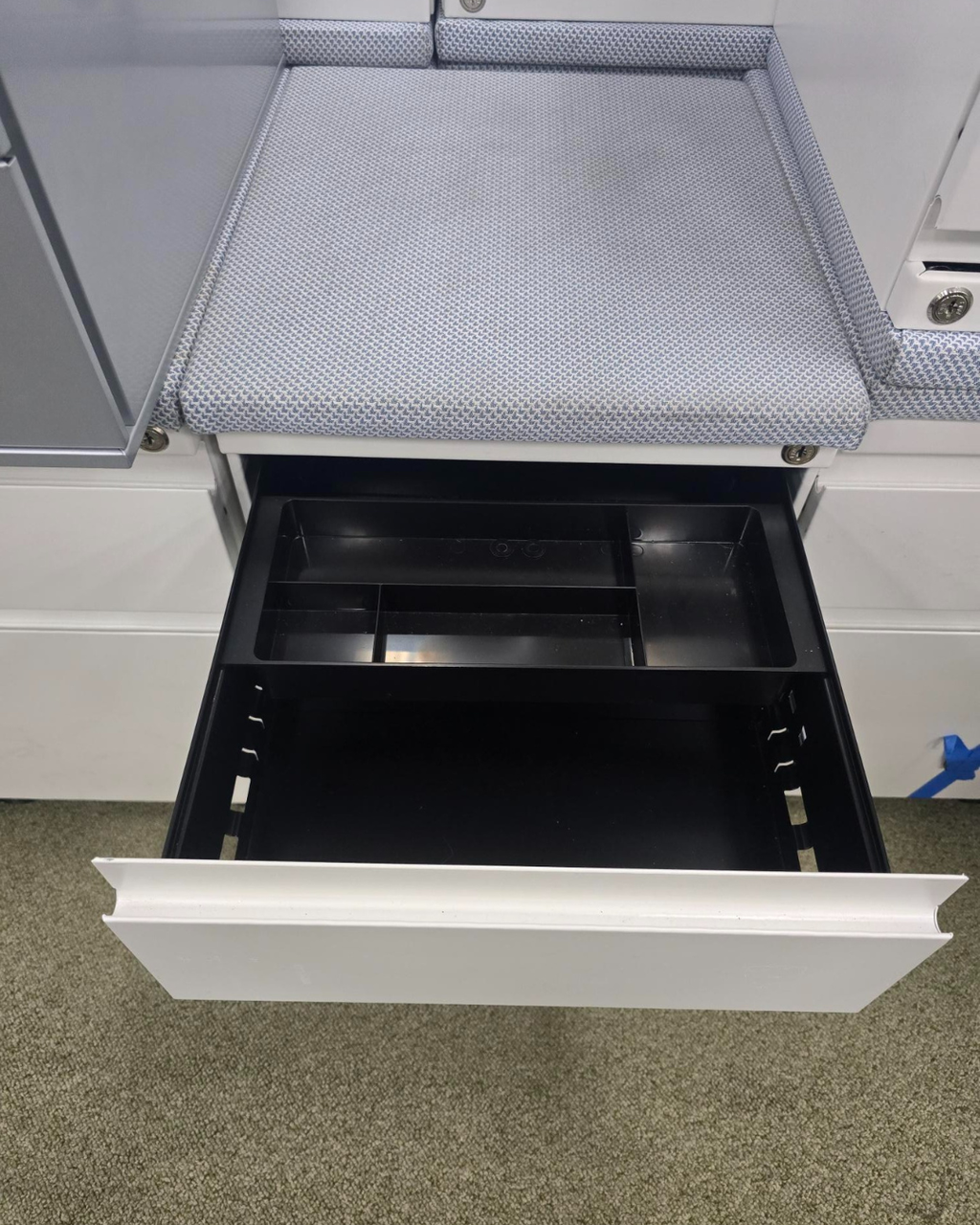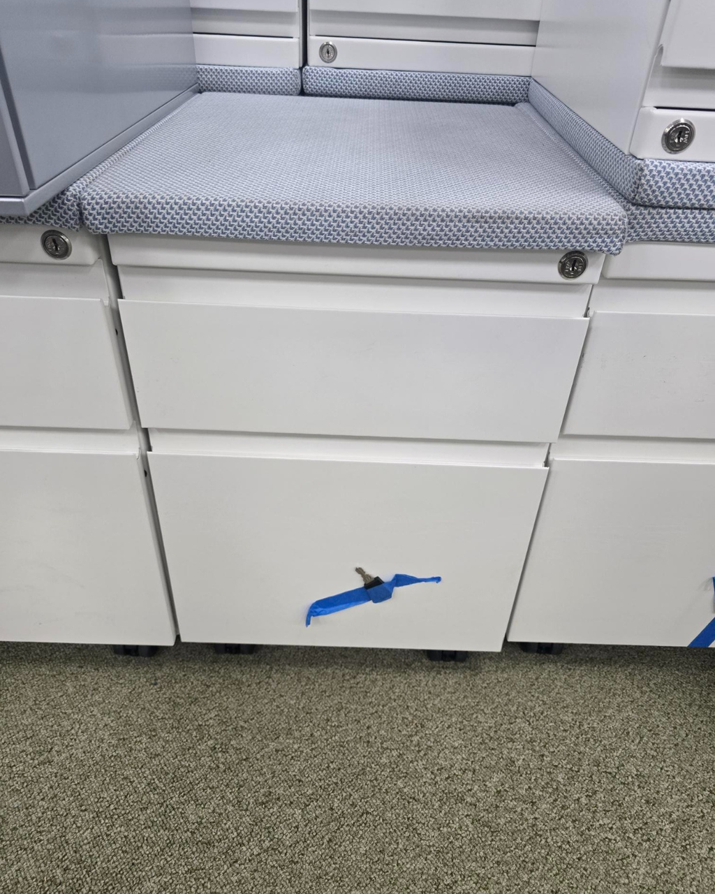PRE-OWNED MOBILE BOX/FILE PEDESTAL WITH CUSHION AND KEYS