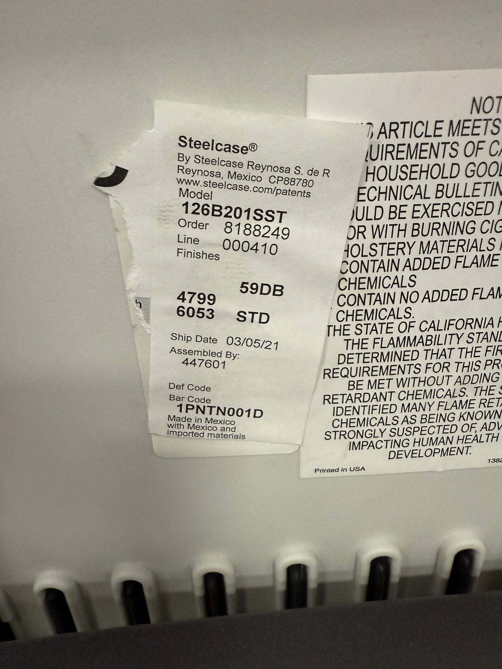 “They’re labeled as Steelcase… Steelcase Vecta Kart conference chair.”