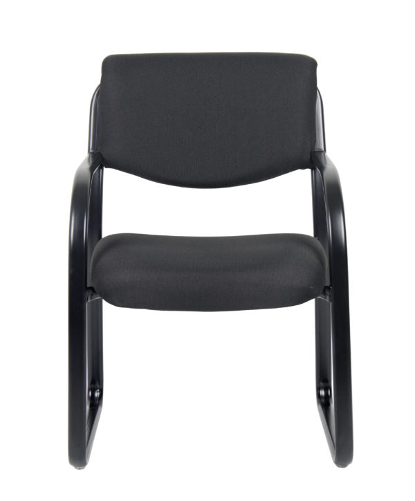 The Boss B9521 Is a great economical guest/waiting room chair. It has rounded arms, and comes with a black powder coated, steel frame, and wrapped in 4 fabric colors; Black, Blue Red, and Charcoal. It has a padded seat and back for extra comfort. It is very sturdy, and well built.  This chair is comfortable and good looking. These chairs are priced to move and will fit any budget.