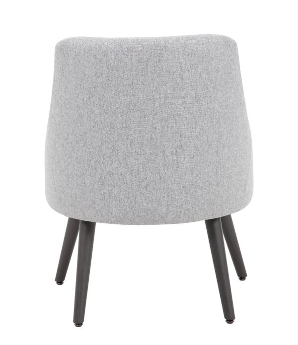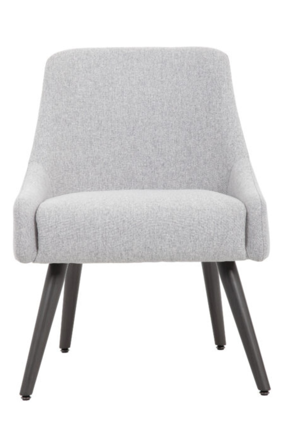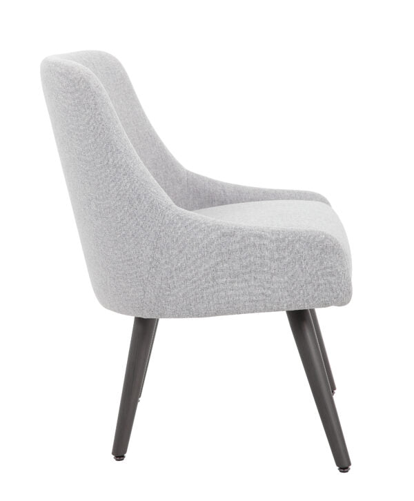 This Boyle guest chair has a unique curved back and it has a foam padded seat. Both of which are upholstered in a soft-touch poly-linen weave. It also comes equipped with 4 metal legs with a mahogany powder coat finish.
