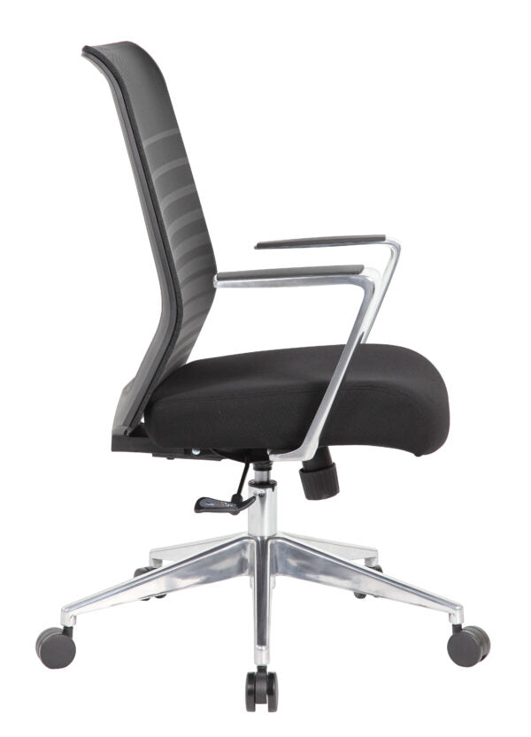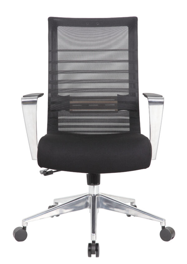 The horizontal mesh back task chair is designed with comfort and ease in mind. The chair features a technology called a Synchro-Tilt Mechanism. This allows the backrest and seat to tilt in unison. The back tilts more than seat and is also tension adjustable. The chair also features aluminum arms and base, a pneumatic gas lift that allows for easy adjustable height, and a weight limit of 275 lbs. making sure it is the perfect chair for almost everybody.