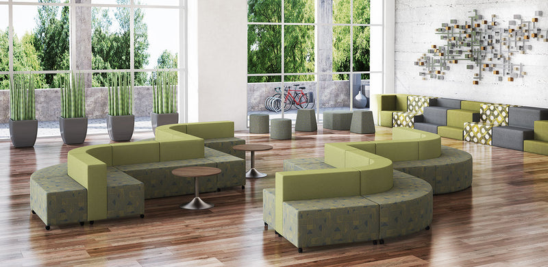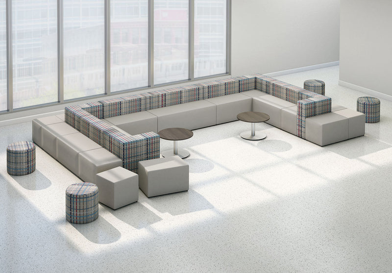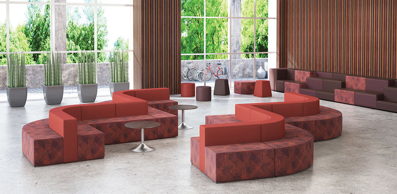 Flex is designed for casual gatherings allowing perimeter spaces to become useful for collaboration. Flex Lounge seating bridges the gap between casual Flex Ottoman seating and Flex Tier seating with a modular lounge approach. Comfortable seats and benches are easily re-configured for meetings or casual gatherings. Flex Lounge's design is based on 20" deep seats and 10" deep backs to create an endless variety of seating arrangements. 30" high padded backs make even a brief touchdown painless. Flex Lounge also includes two-sided seating suitable for dining halls.